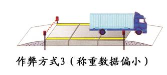 在稱重過程中,作弊車輛會存在不完全上磅或者多輛車同時上磅的情況,此系統(tǒng)可以輕松應(yīng)對這些問題。在車輛未完全上磅(如圖二、圖三所示),前輪或者后輪壓在外面,測量數(shù)據(jù)會比實際稱重重量偏小,在多輛車同時上磅的情況(如圖一所示)稱重數(shù)據(jù)會比正常數(shù)據(jù)偏高。多種作弊方式的出現(xiàn),為企業(yè)管理帶來了很大的困擾,若磅房只有一個過磅員,由于精力有限,過磅車輛多,過磅員受各種壓力和誘惑的影響,很難嚴(yán)格執(zhí)行過磅計量的標(biāo)準(zhǔn),若企業(yè)增派過磅員,又會給企業(yè)增加人力開支,并且作弊情況也無法從根本上控制,無人值守防作弊系統(tǒng)采用紅外定位方式,在磅前、后端都設(shè)有紅外對射器,紅外發(fā)射器不間斷發(fā)射紅外信號,如果車輛未正常上磅稱重,紅外線會被擋住,稱重軟件不予以過磅,LED屏幕上會提醒車輛未完全上磅信息。